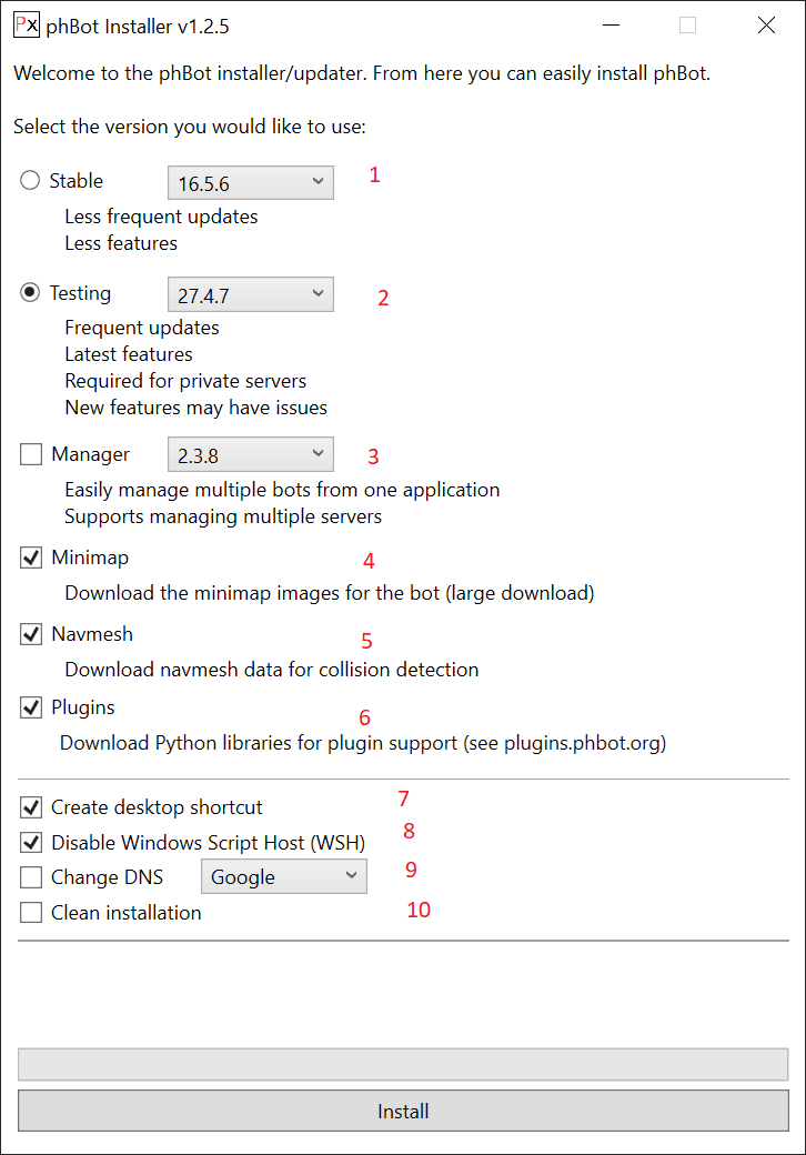 The installer is a simple application that will download all of the necessary files to run phBot. Everything gets installed to `%LOCALAPPDATA%\Programs`.